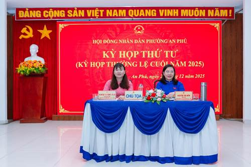 Ngày 24/12/2025, Hội đồng nhân dân phường An Phú khóa I, nhiệm kỳ 2021-2026 đã tổ chức Kỳ họp thứ tư (thường lệ cuối năm 2025). Kỳ họp được tổ chức nhằm đánh giá tình hình và kết quả thực hiện nhiệm vụ phát triển kinh tế - phường hội, bảo đảm quốc phòng - an ninh năm 2025; Phương hướng, nhiệm vụ, giải pháp trọng tâm năm 2026; đồng thời xem xét, quyết định những nội dung quan trọng thuộc thẩm quyền của HĐND phường. Bà Nguyễn Thị Hiền, Bí thư Đảng ủy, Chủ tịch HĐND phường và Bà Nguyễn Thị Ngọc Bích, Đảng ủy viên, Phó Chủ tịch HĐND phường đồng chủ trì Kỳ họp.